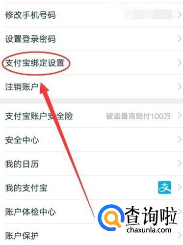 点击“支付宝绑定设置”,进入下一界面。