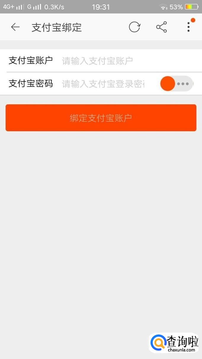 进入之后,输入想要换绑的支付宝账号和密码,点击“绑定支付宝账户”即可完成原账户解绑,换绑另一个账户。