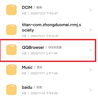 3、在“手机”下找到“QQBrowser”文件夹,点击打开即可查看到了。