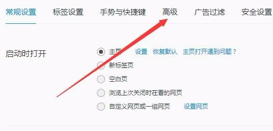 3、这时会打开QQ浏览器设置窗口,我们点击上面的“高级”标签