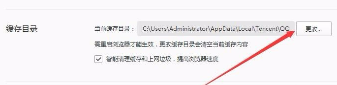 4、在下面可找到一个缓存目录的项,点击当前缓存目录后面的“更改”按钮