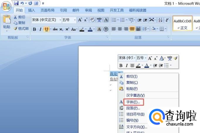 然后我们右击选择字体;