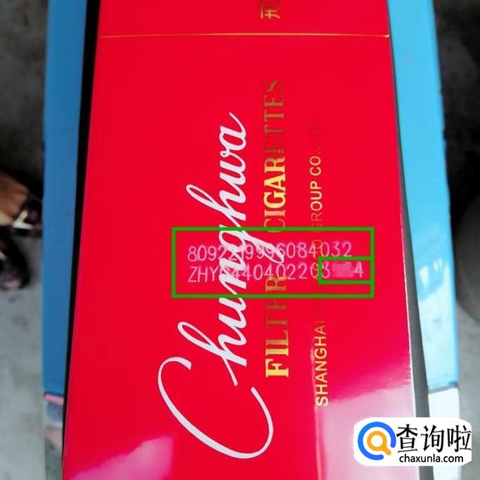 看下图,中华烟的外壳背面的二行字,出厂日期就在第一行数字里面,第二行是销售地点和客户的编号,每一家有烟草证的都有一个编号,如果你去买烟,怕买到假货,你就让他出示几条烟,你看下面的编号的最后四位数是相同的,那就是买到真烟了。看第一行第一个数字是8,那就是2018年。如果是7,就是2017年。