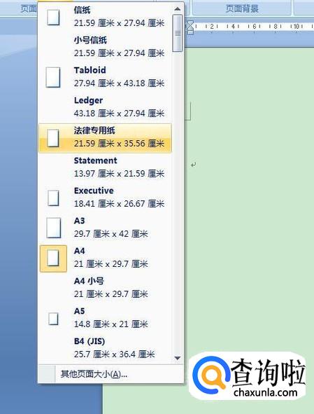 然后选择我们想要的纸张大小,如下图所示。