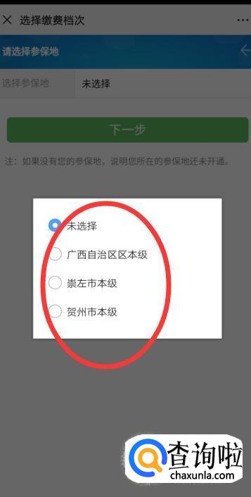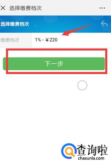 缴费档次选择1%—¥220,(这里注意,每一年都不一样),选择后点击下一步。