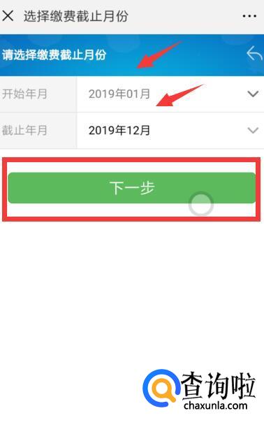 选择缴费的起止日期,一般是不用改的,直接点击“下一步”即可。