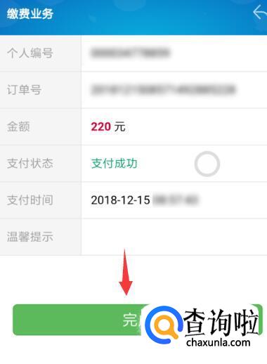 确认付款后,即可缴费成功了,点击完成即可。