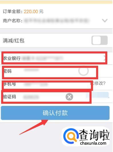 按照提示的步骤,填写好缴费卡号,银行卡密码、银行预留手机号,输入手机验证码,点击“确认付款”。