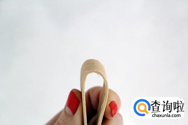 然后我们再取一根竹条,进行弯曲,弯曲的程度尽可能的大,如图所示,同样的,我们对编织好的竹条也进行弯曲处理,如图所示,处理的时候可以借助尺子。