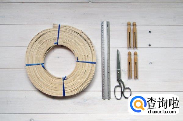 首先我们准备如图所示的工具和材料,竹条是必不可少的,还有一些裁剪的工具比如剪刀。
