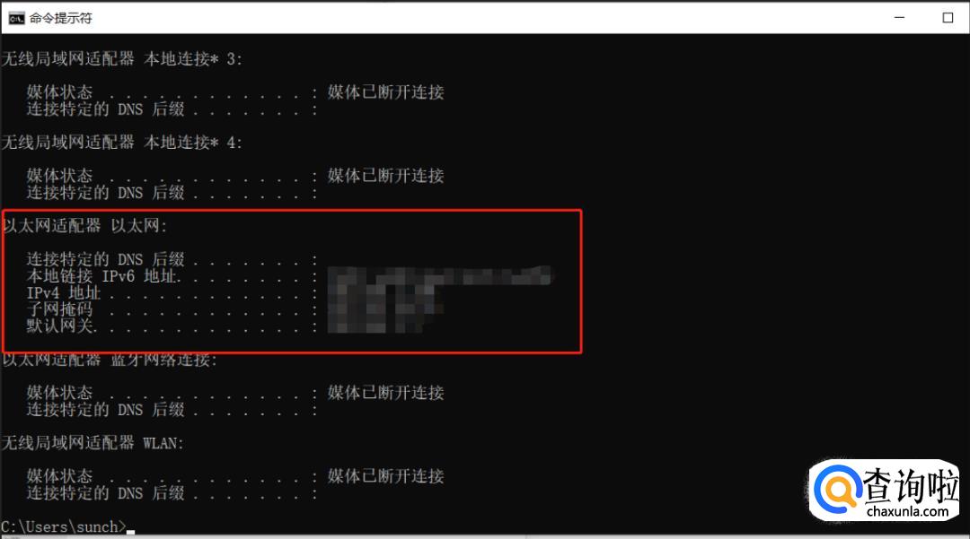 直接输入“ipconfig”,再按下回车键: