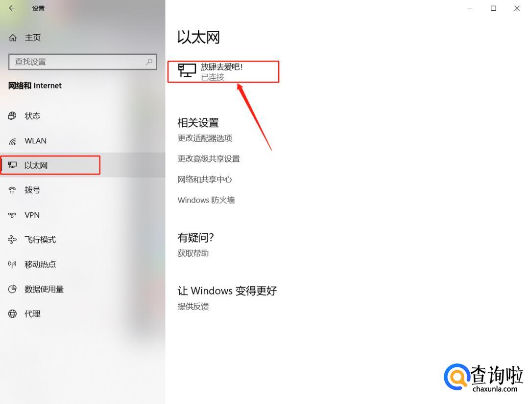 鼠标左键单击“以太网”再左键单击箭头所指的你所连接的网络图标: