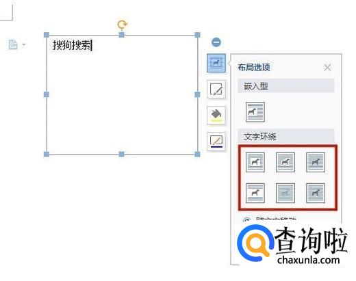接着选择你想要的文字环绕类型,如下图所示。