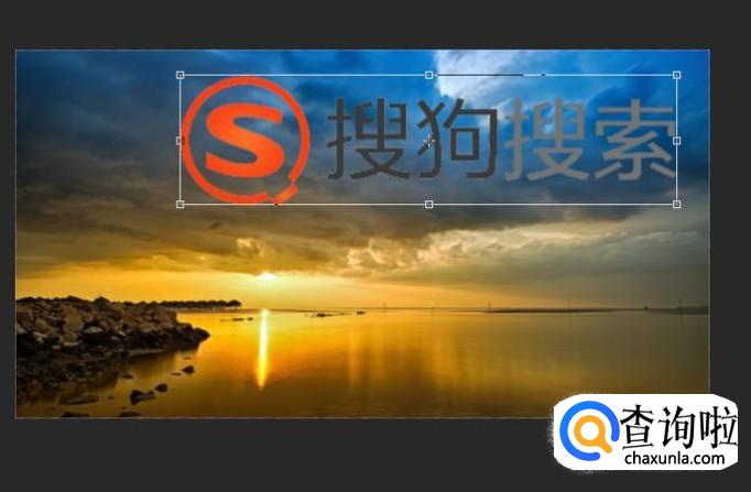 然后在目标图片中调整logo的大小和位置,选择logo图层,按Ctrl+T可以调整大小,如图。