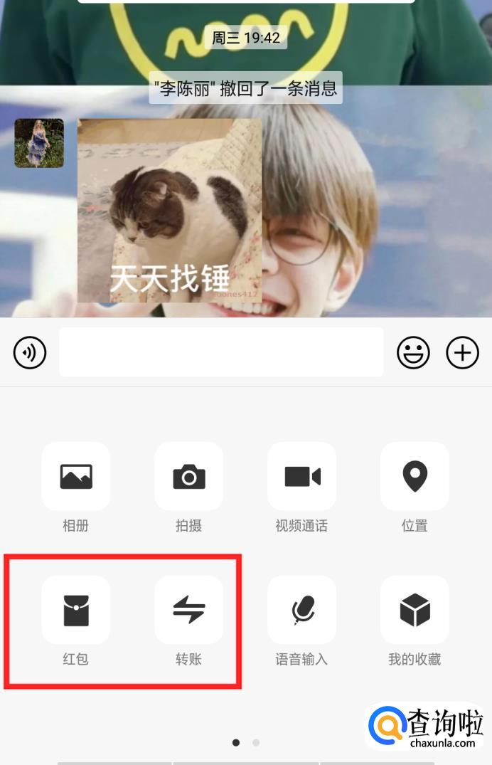 我们只需要在聊天界面点击下方的红包或是转账。