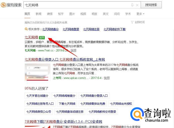 找到“七天网络”后面带有官网字样的链接,点击进入。