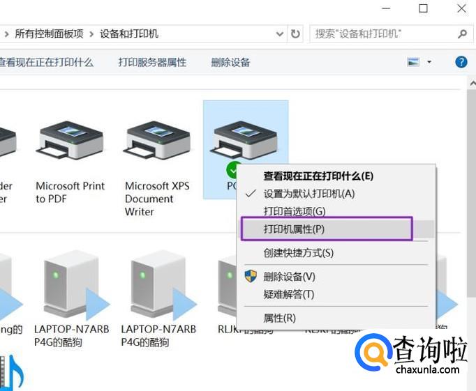弹出的界面,找到我们安装的打印机,右击打印机,然后左击打开打印机属性;