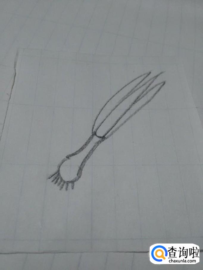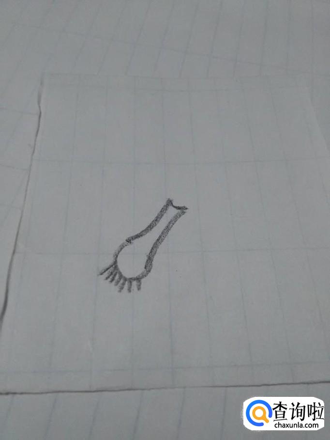 在颈部上方画六条弧线,每两条弧线相交在一起,组成一片叶子,一共三片叶子。