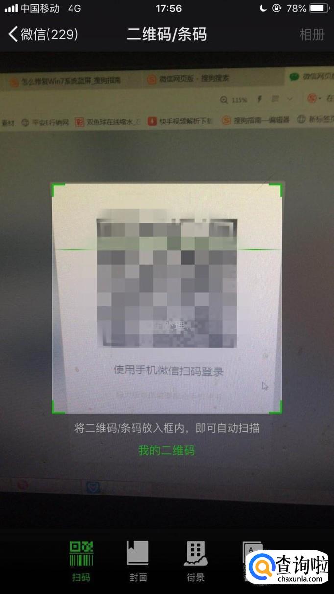 然后扫描电脑屏幕上的二维码,如下图所示。