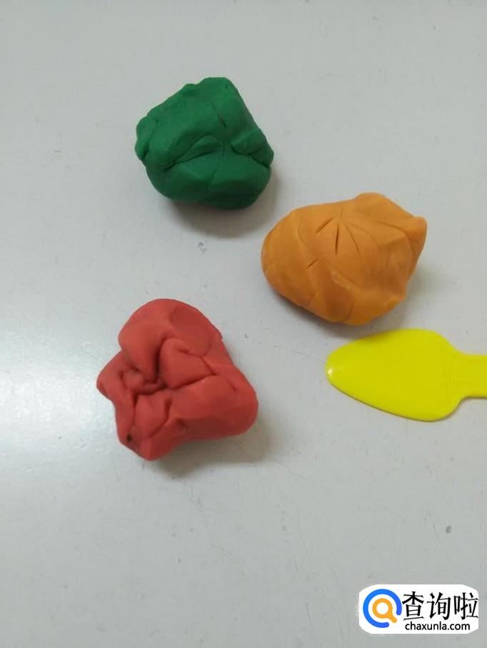 准备三块橡皮泥和一把小刀。