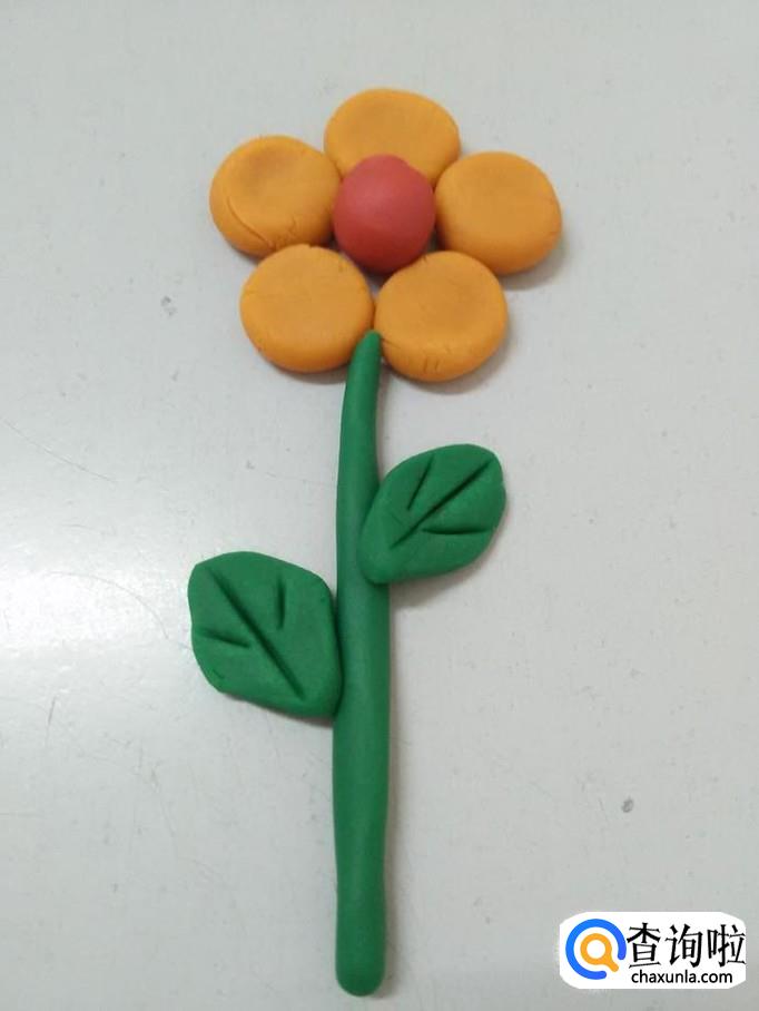 用绿色搓一个细长条,粘在花朵下面,当作花茎。
