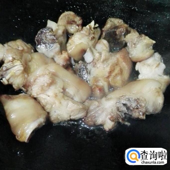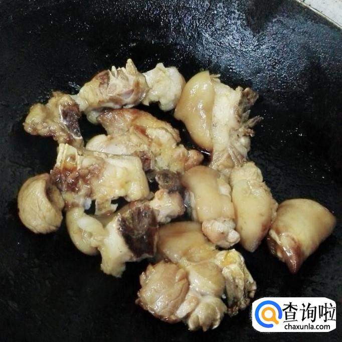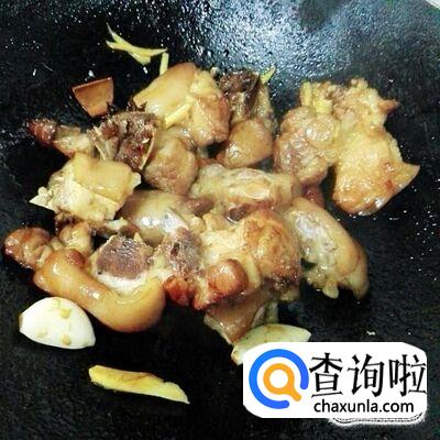 再把猪脚放下去,中火翻炒,让猪脚都裹上冰糖。