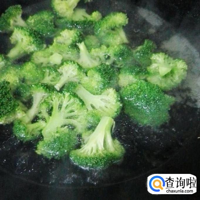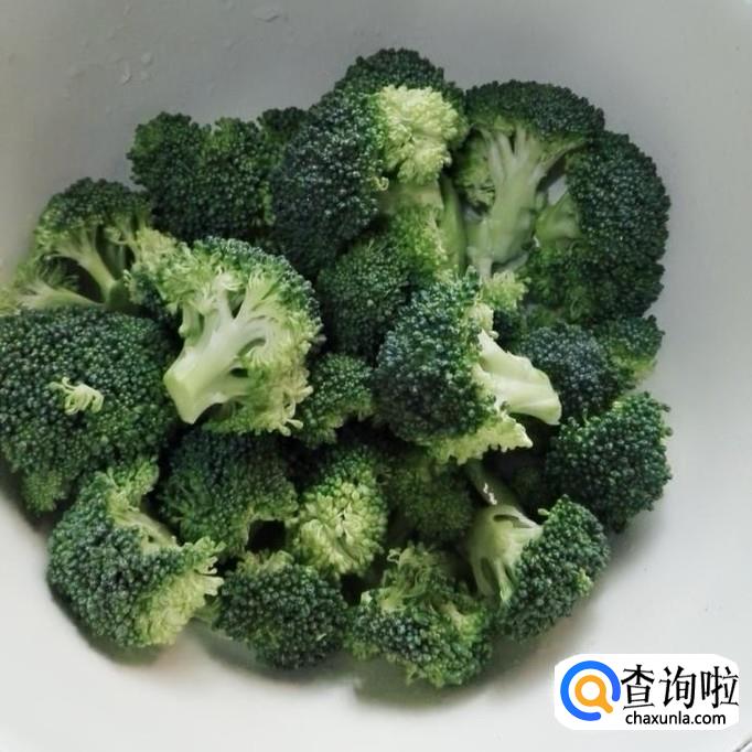 把西兰花切成一小朵,再放在滚水中焯二分钟。水中放半勺盐和少量花生油。