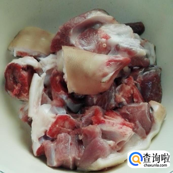 先把猪脚处理干净,猪脚上的猪毛一定要处理干净,再剁成块备用。