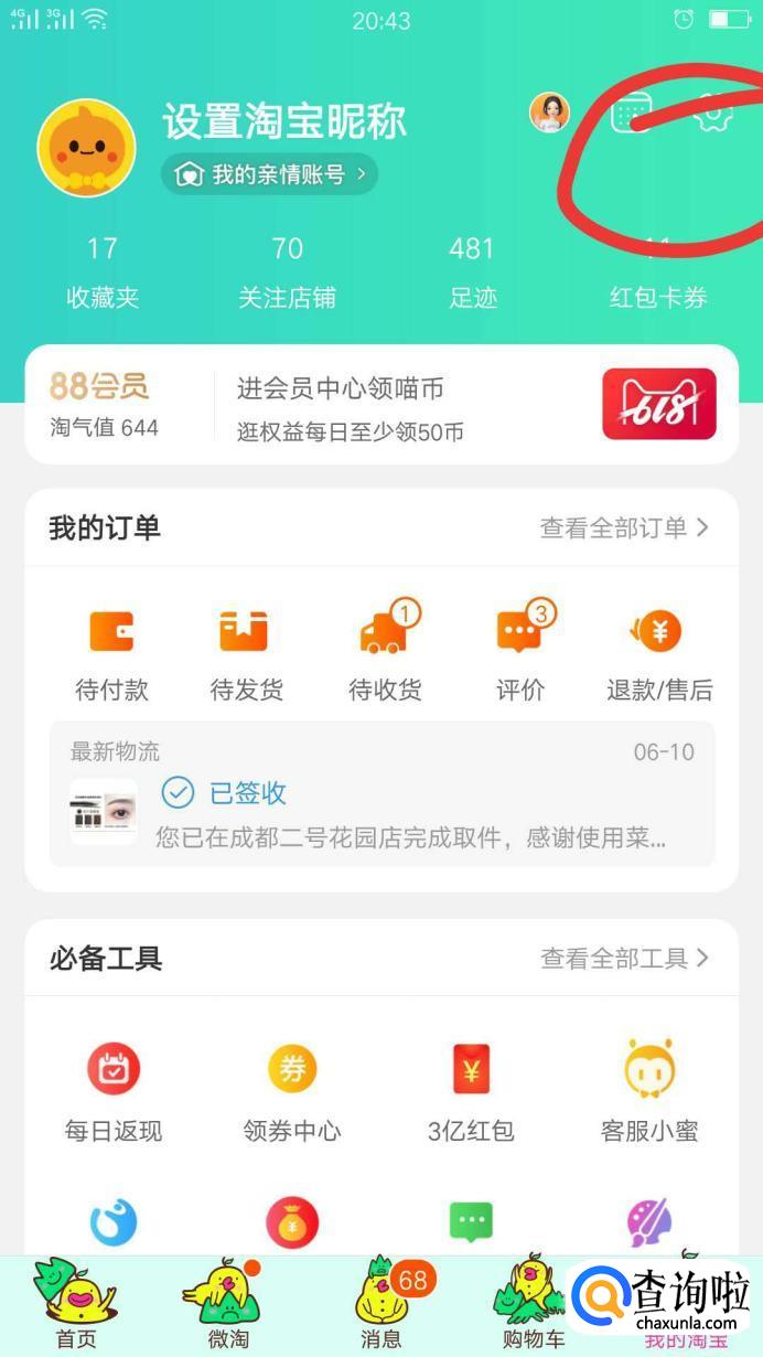在我的淘宝这个页面,点击右上角有一个设置,如图所示。