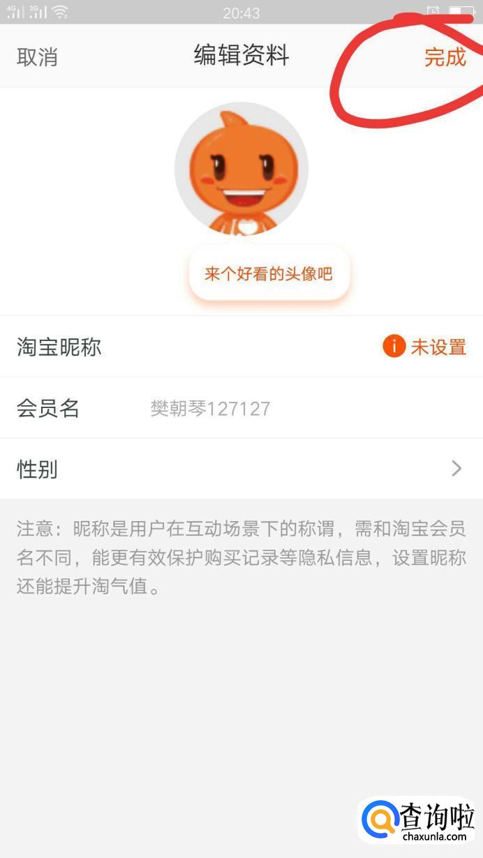 进入该页面,看见会员名后,改好你的新会员名字,如图所示,点击完成即可。