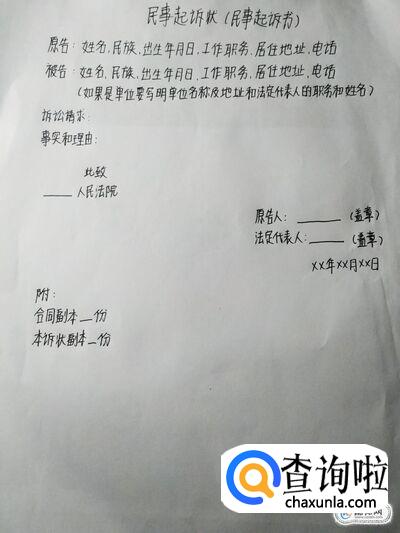 接下来就是事实和理由,这部分是起诉状的主要内容。诉讼请求必须具体、明确,该写的一定要写,因为其事关法院审查的范围。但千万不可不加思考地乱要求,如果无相应的证据来支持你的主张,势必遭到败诉的后果,通常还会因此而向法院支付相应的诉讼费。关于事实与理由部分也是至关重要的,一般要求内容真实详尽,理由充分,切不可不着边际洋洋洒洒上万言却未及案件的核心要害。