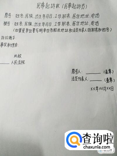 正文部分我们首先写原告的姓名、性别、年龄、民族、职业、工作单位、住所、联系方式,法人或者其他组织的名称、住所和法定代表人或者主要负责人的姓名、职务、联系方式;