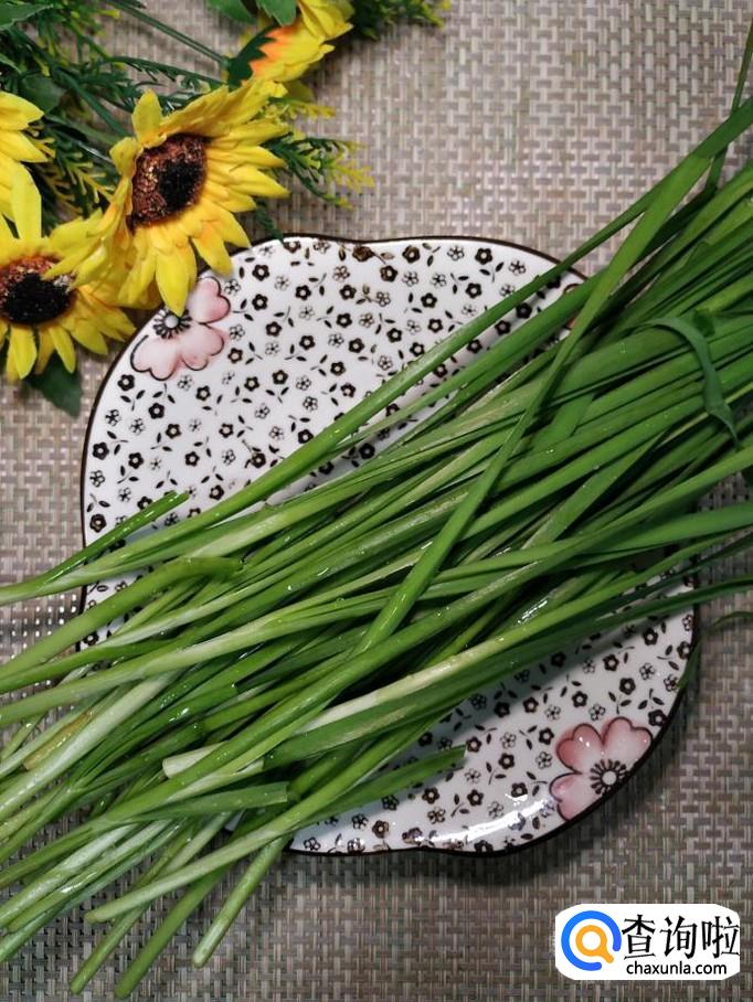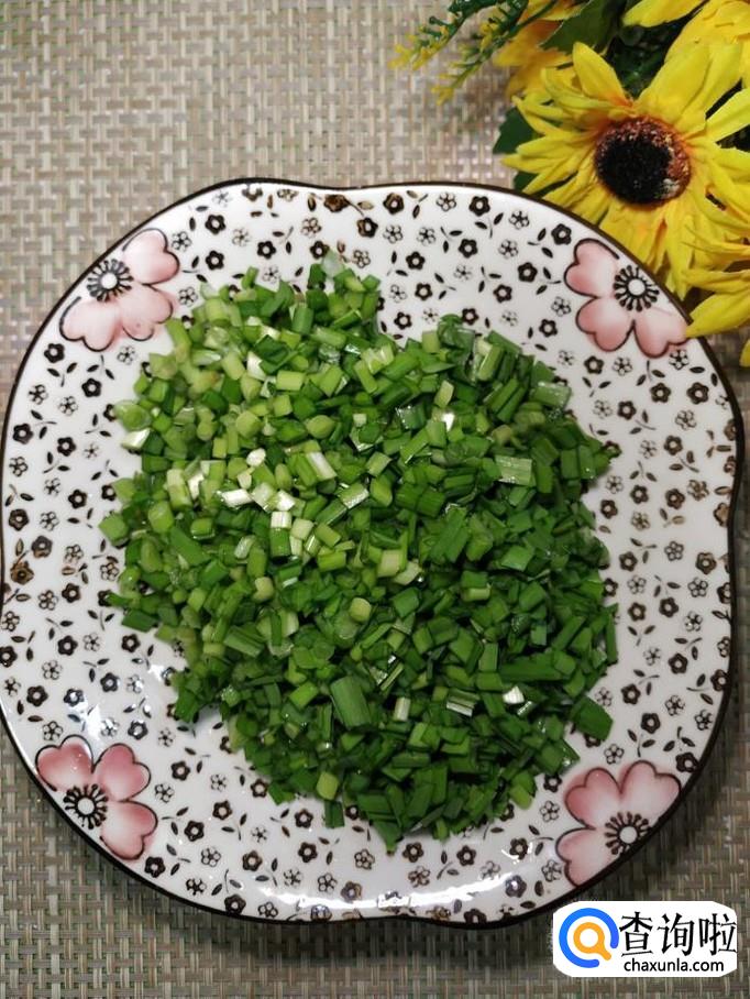 再准备适量韭菜,洗净后切碎,放入盘中备用。韭菜一定要选用新鲜的韭菜,这样口感才更好。