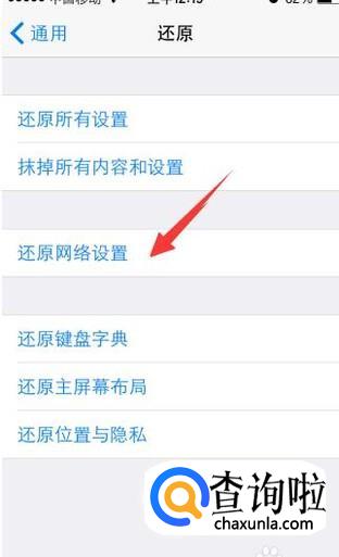 还可以“还原网络设置”,操作路径是打开苹果设置、点击通用进入、在将页面下拉点击还原、还原网络设置。