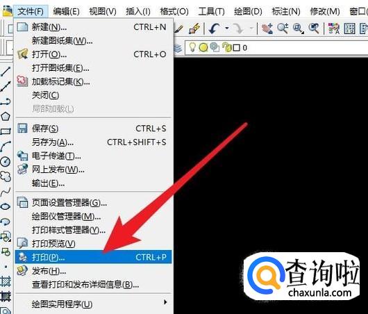在工具栏中点击文件标签后在下拉菜单中点击打印命令。