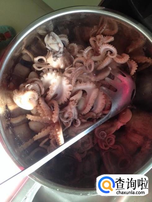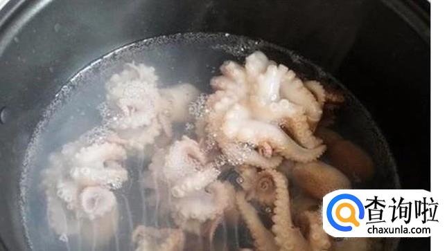 待锅中的水烧开即可将八带鱼倒入锅中焯熟,就可以拿出备用。