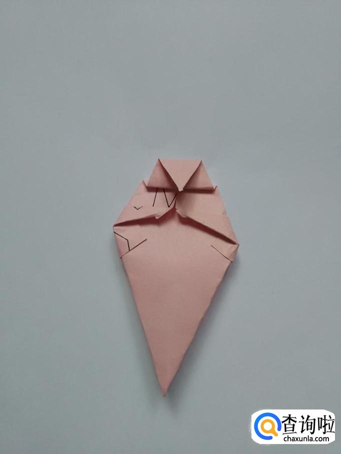 再把折后的两个角往下折。