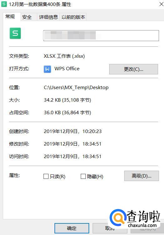 右键点击刚刚保存的只读表格文件,点击“属性”。