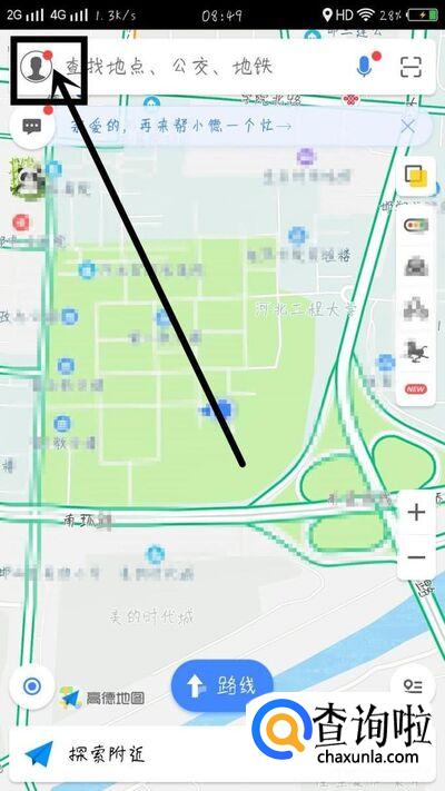 打开高德地图,进入高德地图首页,点击左上角的头像,如图所示。