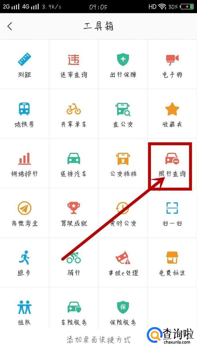 进入“工具箱”页面后,点击“限行查询”,如图所示。
