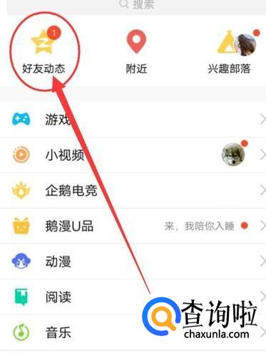 在动态页面,点击“好友动态”,如图所示。