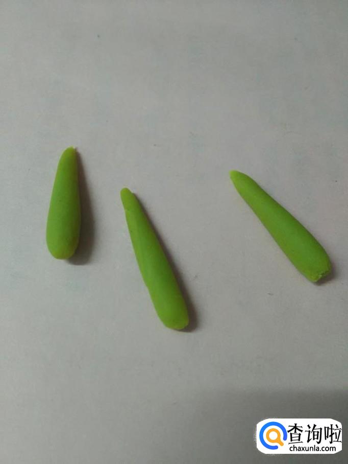 把黄色彩泥搓成一样大的条,一头粗,一头细。