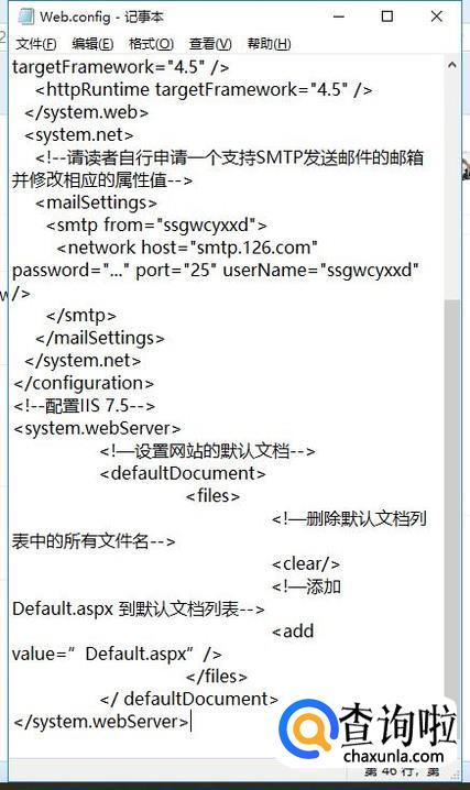 第二种方法。打开web应用程序中web.config配置文件,即网页文件夹中的web.config文件,用记事本打开。