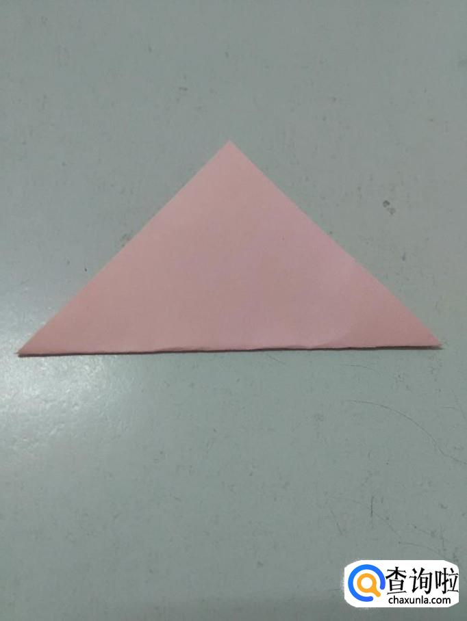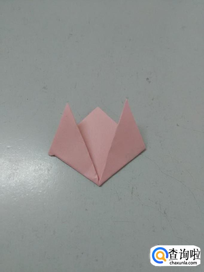 把两边的角往上折,上面形成三个尖,表示三个花瓣。
