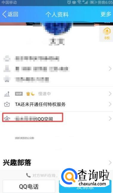 弹出的界面,我们点击他的QQ空间;