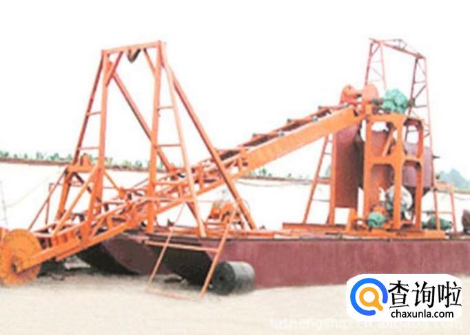 之后,挖沙船船需要利用链板的转动带动链斗,将疏松的砂石进行传输,并提出水面,提出水面的砂石经过链斗被送到挖沙船的圆通筛沙机内。