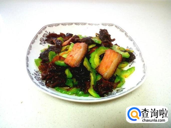 木耳 25克 ,苦瓜 1根 ,川味腊肉 100克 。