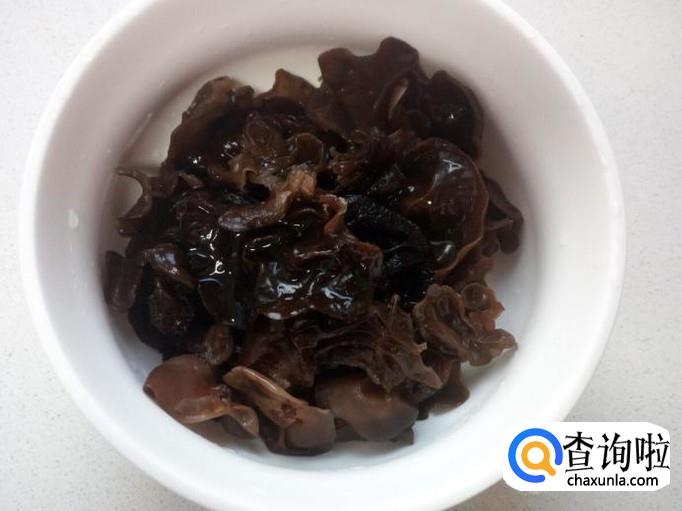 用温水快速泡发木耳,把泡发好的木耳收拾清洗干净,控干水分,备用。