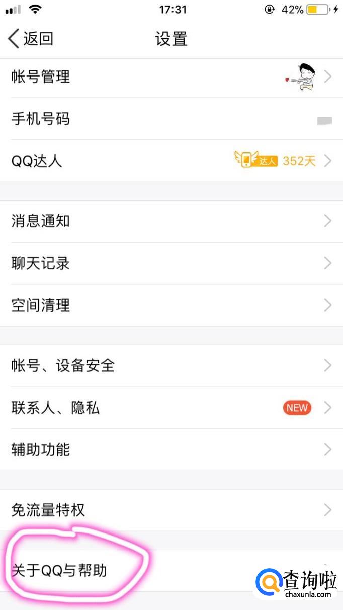 接着,点进去之后,点击“关于QQ与帮助”。