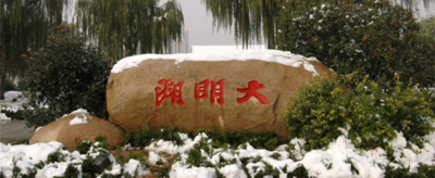 书写“大明湖”三个字的,是乾隆年间的大书法家于书佃。而正是康乾时期,文字狱确实很紧张,所以,也有可能是于书佃,本来可以写“明”的,也都写成“明”,则可以避免不必要的麻烦。然而,即便不是清代,许多字刻中也是有“眀”的。譬如现代书法家武中奇写的“明太祖之墓”: